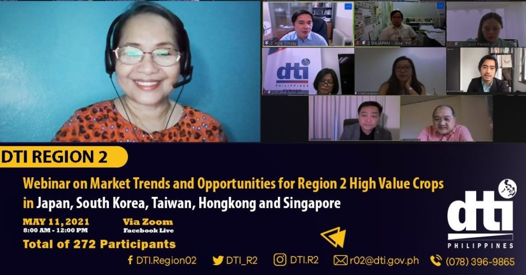 The Department of Trade and Industry’s (DTI) Philippine Trade and Investment Centers (PTIC) in Hong Kong, Japan, Singapore, South Korea, and Taiwan identified high-value crops from Region 2 with significant export potential to East Asia during a discussion on opening up the agricultural production of Cagayan Valley to global markets last 11 May 2021.