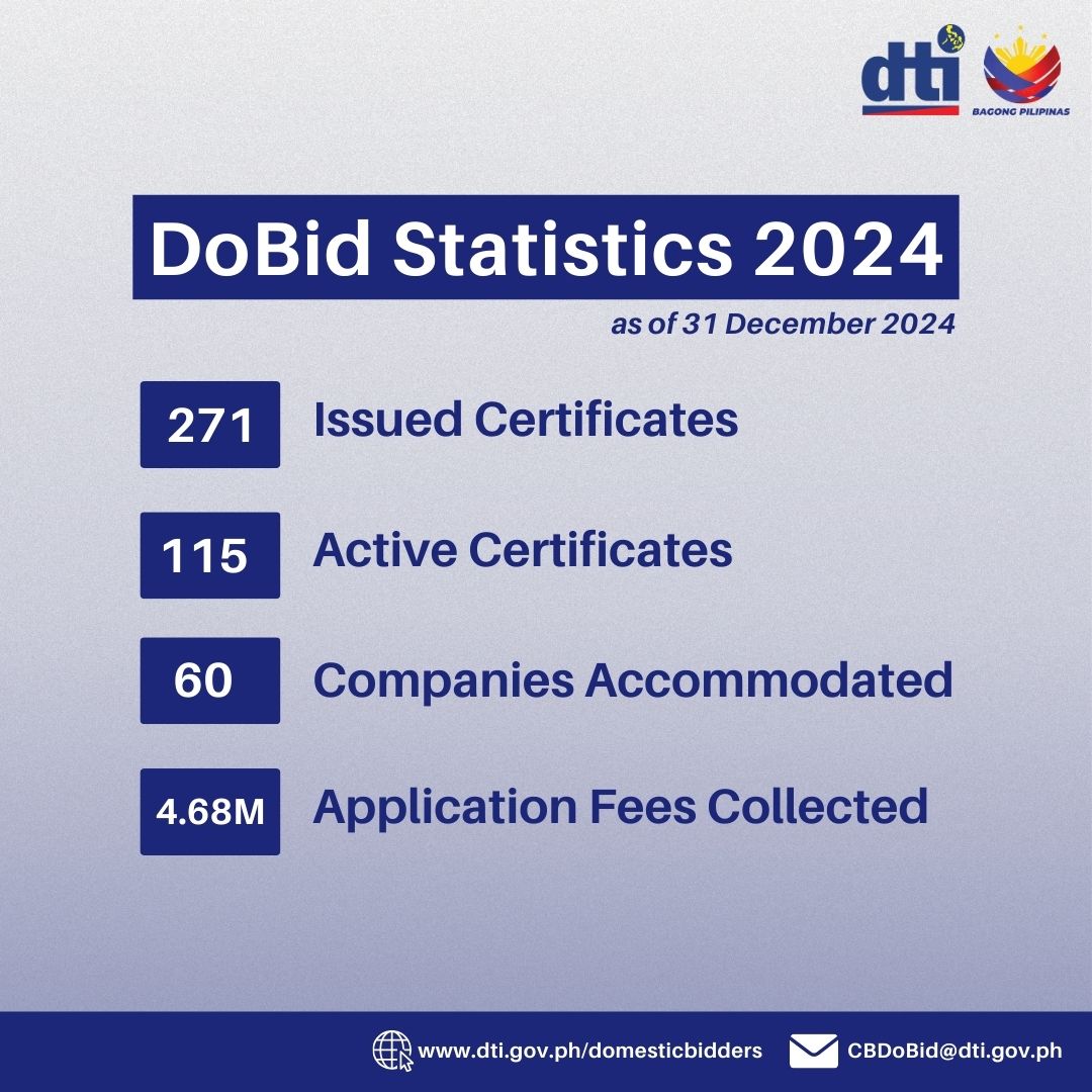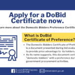 The Department of Trade and Industry – Bureau of Competitive Development (DTI-BCD) recently concluded the Prefer Pinoy Roadshow in October 2024 promoting the Domestic Bidders’ (DoBid) Certificate of Preference...