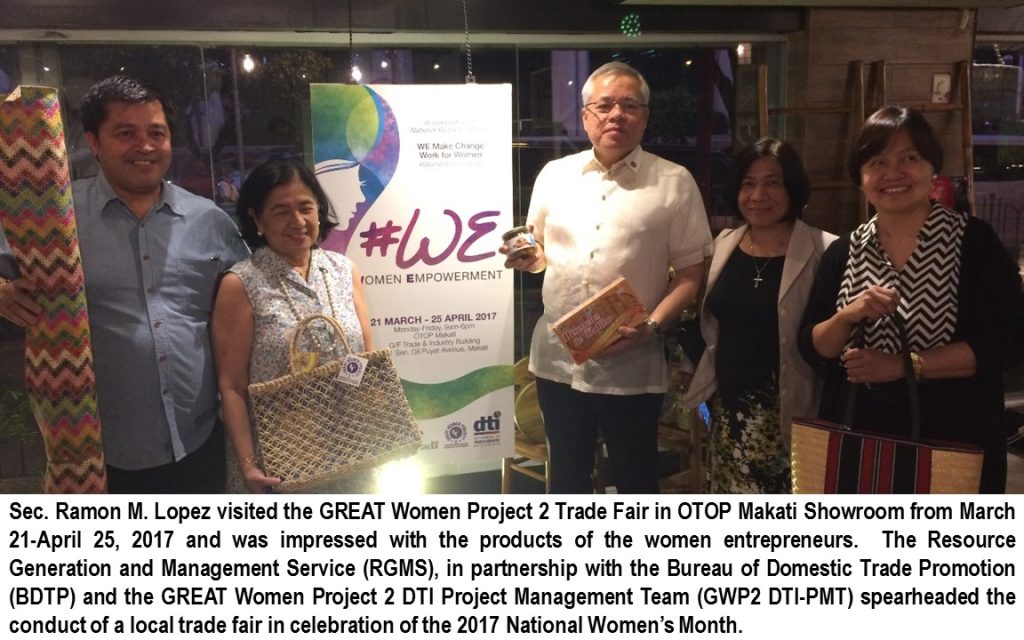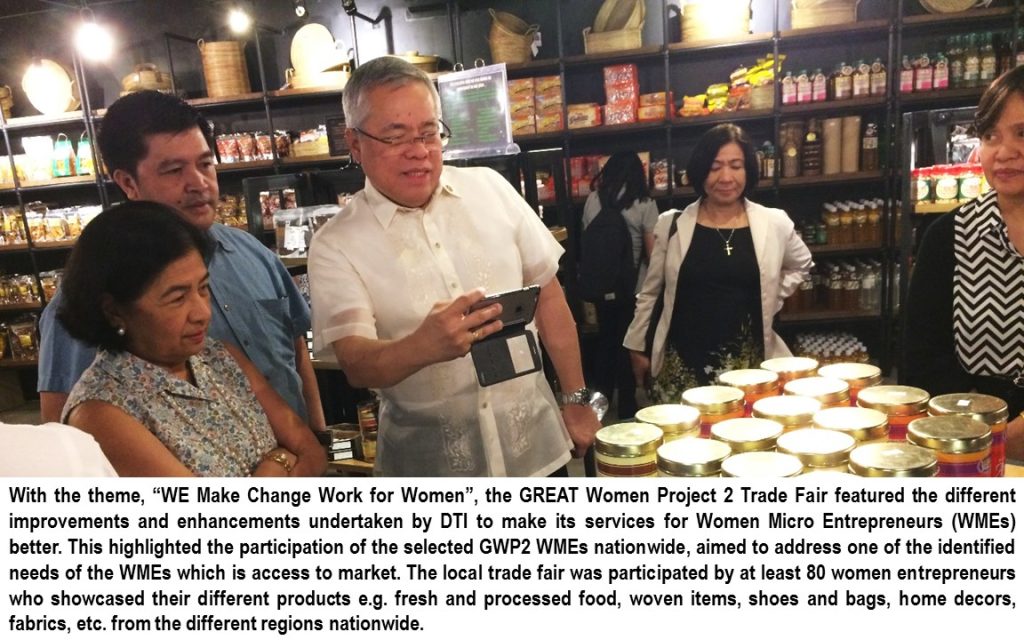Building on GREAT Women 1’s success, GREAT Women Project II, also otherwise known as Supporting Women’s Economic Empowerment in the Philippines, is a PhP 334.9-million project that was developed to provide a timely opportunity to improve sustainability, productivity, and competitiveness of women’s micro-enterprises and to continue enhancing the enabling environment for economic empowerment of women.