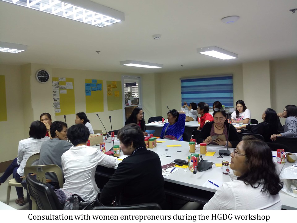 DTI programs that focus on women’s participation and benefits in livelihood and entrepreneurial activities are: (i) mainstreaming GAD in development plans, (ii) sustaining women in business, (iii) capacitating women in entrepreneurship, and (iv) greater and better access to business finance.