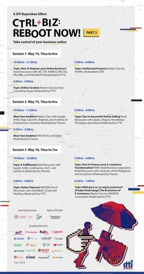 The DTI E-Commerce Office and its partners are proud to bring CTRL+Biz Reboot Now series 2. Don’t forget to watch on Facebook Live @dti.ecommerce |