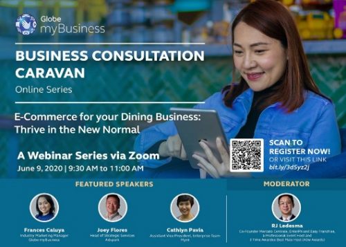Kamusta ang GCQ, ka-reboot? Discover how to set up cashless transactions or a digital shop for your restaurant or cafe on June 9 during the next Business Consultation Caravan session from Globe My Business. Register here for free to reserve your slot: bit.ly/3d5yz2j |