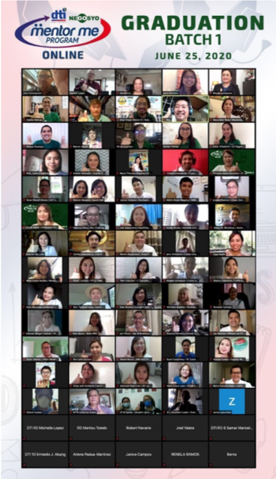 Gearing up towards the New Normal, the Department of Trade and Industry (DTI), in partnership with Go Negosyo, successfully launched the first-ever graduation of the 45 micro, small, and medium entrepreneurs (MSMEs) across the regions, who completed the business courses online as the Department’s Kapatid Mentor Micro-Enterprise (KMME) pivoted to digital.