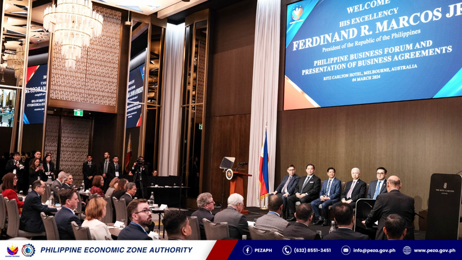 The forum also saw the presentation to the President of 12 new business agreements totaling USD 1.53 billion between Filipino and Australian companies including among others those of long-time PEZA investors IMI and Filinvest – Clark Green City. The signed agreements cover crucial sectors for Philippine economic growth, including renewable energy (RE), waste-to-energy technology, countryside housing development, data center establishment, and health technology solutions manufacturing, and digital health solutions.