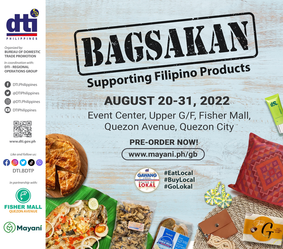 The Department of Trade and Industry (DTI) through its Bureau of Domestic Trade Promotion (BDTP) is partnering with Fisher Mall in mounting a Bagsakan event on 20 – 31 August 2022 at the Event Center, Upper Ground Floor of Fisher Mall in Quezon Ave., Quezon City. A ribbon-cutting ceremony with DTI officials and the Fisher Mall management is scheduled on 22 August 2022, 11 a.m. at the venue.