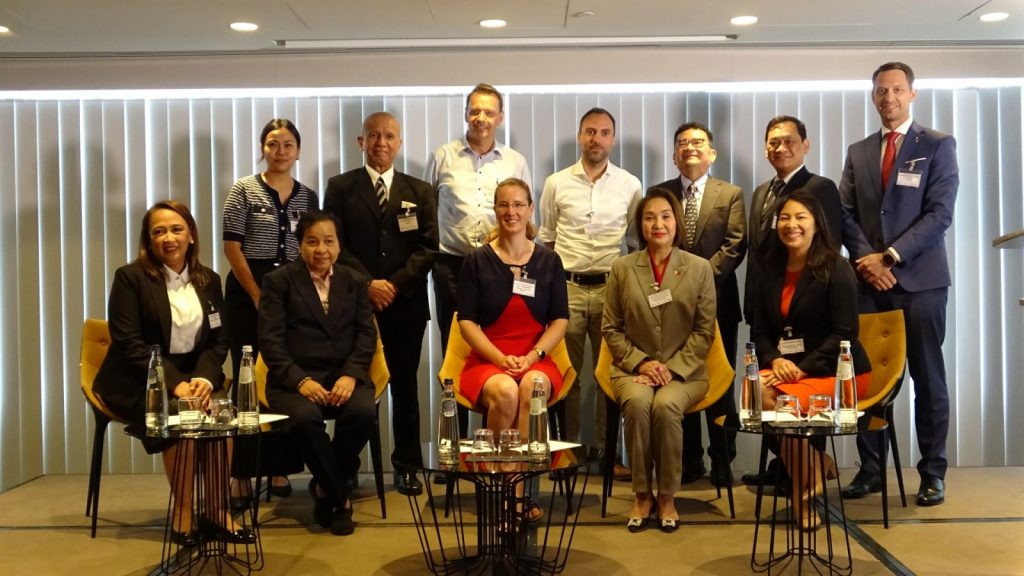 Front row, L to R: BOI Executive Director Evariste Cagatan, DOE Assistant Secretary Mylene Capongcol, Ms. An Stroonbandt of the Belgian Ministry of Energy, DTI Undersecretary Kim B. Lokin, PTIC-Brussels Commercial Counsellor and Director Magnolia Misola-Ashley