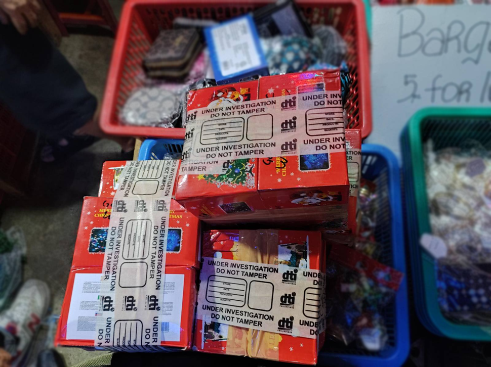 The Department of Trade and Industry (DTI) ramped up enforcement operations net Php235,505.00 uncertified Christmas lights in the Metro from September to 27 December 2022; and Php11,885.00 unlicensed fireworks in Bocaue, Bulacan, on 27 December 2022.