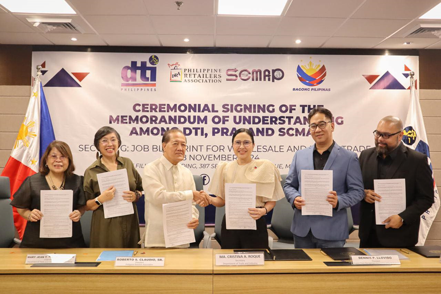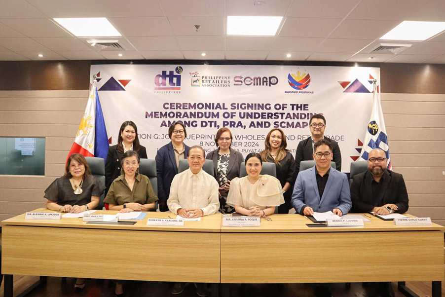 Makati City, Philippines—The Department of Trade and Industry (DTI) has signed a memorandum of understanding (MOU) with the Philippine Retailers Association (PRA), and the Supply Chain Management Association of the Philippines (SCMAP) on November 08. This partnership strategically aligns with AmBisyon Natin 2024, the Philippines’ long-term vision for growth in the wholesale and retail trade sector.
