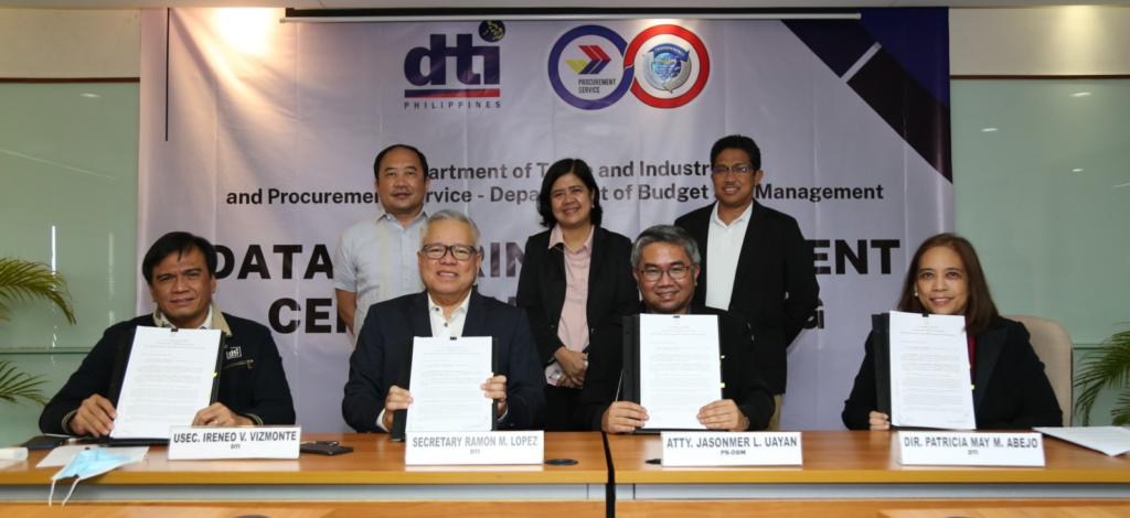 Signed by Trade Secretary Ramon M. Lopez and PS-DBM OIC Executive Director Jasonmer L. Uayan, the agreement is expected to help promote the integrity of and expedite the public bidding process through data sharing.