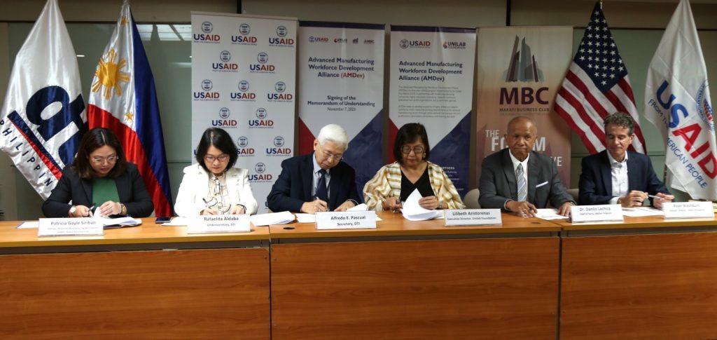The MOU signing ceremony was hosted by the Advanced Manufacturing Development Workforce Alliance (AMDev), a five-year program implemented by the Unilab Foundation (ULF) and funded by the United States Agency for International Development (USAID).