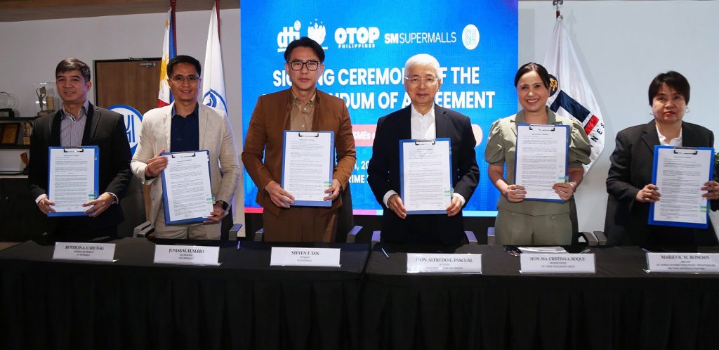 Pasay City, Philippines—To bolster micro, small, and medium enterprises’ (MSMEs) resilience and market reach, the Department of Trade and Industry (DTI) and SM Prime Holdings Inc. signed a memorandum of understanding (MOU) on business continuity planning (BCP) and a memorandum of agreement (MOA) on the One Town One Product (OTOP) promotion, July 1.