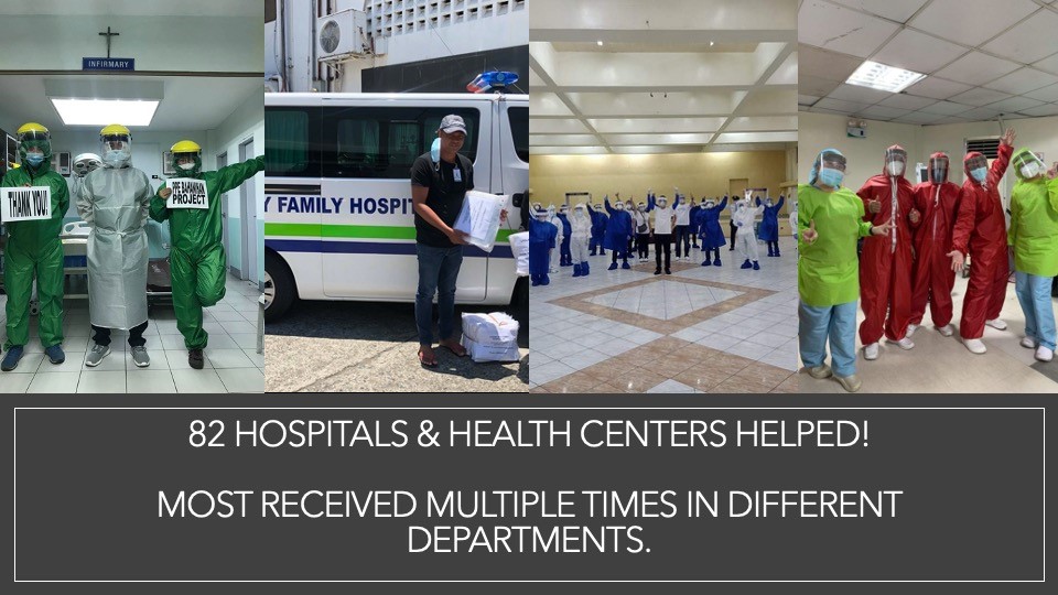 To date, they have donated over 15,000 PPE (face shields, isolation gowns, and jumpsuits) to 82 hospitals, rural health units, and health centers in Metro Manila, Laguna, Batangas, Bulacan, Nueva Ecija, Antique, Quezon, Leyte, Bataan.