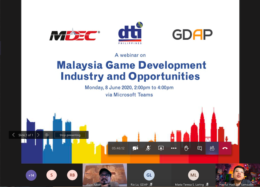 To boost the local game development industry, the DTI-Export Marketing Bureau (EMB) and the Philippine Trade and Investment Center-Kuala Lumpur (PTIC KL) co-organized a webinar on 8 June 2020 with the Malaysia Digital Economy Corporation Sdn Bhd (MDEC), and the Game Developers Association of the Philippines (GDAP) for Philippine game development companies to explore opportunities and widen network with Malaysia. Ms. Katrina Banzon, Philippine Commercial Attaché for Kuala Lumpur, served as the webinar’s moderator and host.