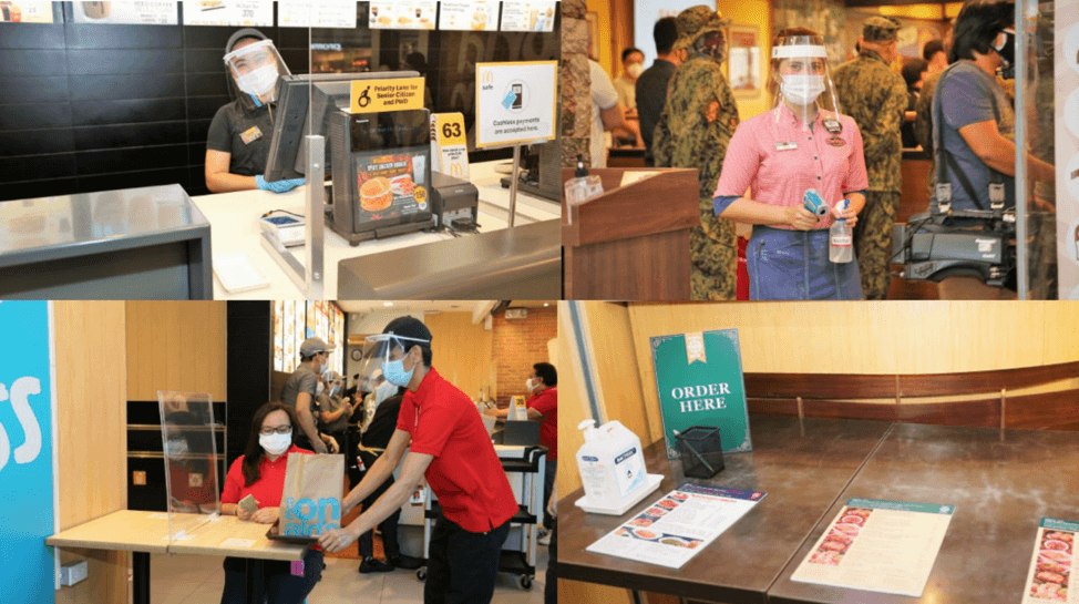 The guidelines also mandate the set-up of service stations: designated area for take-away/pick-up; separate handwashing sink for kitchen staff and dine-in customers; contactless drive-thru counters; and, the closure of play areas. Buffet and self-service areas for food bars, condiments, and utensils are not allowed.