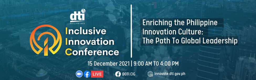 Makati City – The Department of Trade and Industry – Competitiveness and Innovation Group (DTI-CIG) will hold virtually online the Inclusive Innovation Conference (IIC) 2021 on 15 December, Wednesday, from 9:00 AM to 4:00 PM, via Zoom.