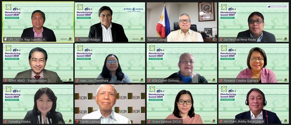 MAKATI, Philippines – Despite the current community quarantine restrictions in the country, the Department of Trade and Industry (DTI) successfully gathered once again key stakeholders from the public and private sectors during the annual Manufacturing Summit held on 25 – 26 August 2021 to discuss the state and prospects of the Philippine manufacturing industry. The main remarks and presentations delivered across the two-day summit focused on the significance of the manufacturing sector as a major growth driver of the Philippine economy, the need to continuously build and enhance manufacturing firms’ capabilities and workforce skills, and the tools and means by which enterprises can be enabled to move closer towards Industry 4.0 (I4.0).