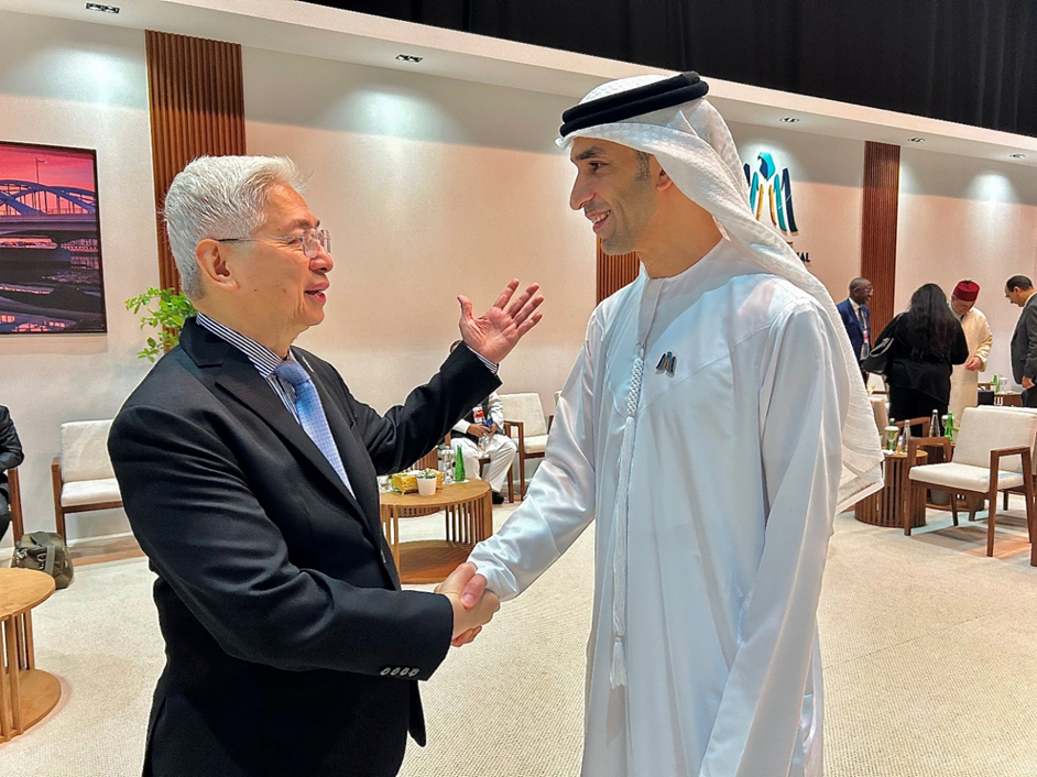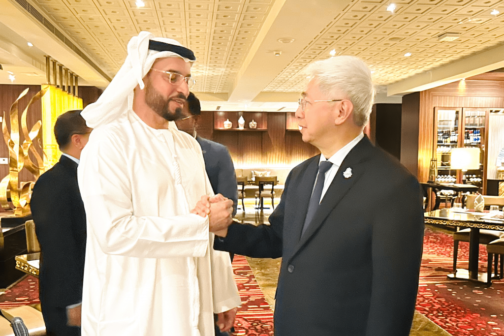 ABU DHABI, UNITED ARAB EMIRATES–Department of Trade and Industry (DTI) Secretary Fred Pascual met with representatives from the global logistics giant DP World on 25 February 2024. Represented by Group Senior Vice President for Government Affairs Omar Al Muhairi and Group Senior Vice President for Corporate Finance and Business Development Anirudh Talwar, DP World expressed its interest in investing in logistics hubs and an industrial park in the Philippines.