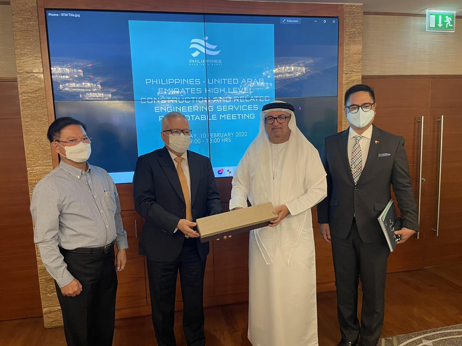 Dubai, UAE – Revitalized business relationships between the Philippines and Middle East in the construction sector took off during the recently conducted Philippines – United Arab Emirates High Level Construction and Related Engineering Services Roundtable Meeting, the Department of Trade and Industry (DTI) reported. The meeting was held on 10 February 2022 in Kempinski Hotel Mall of Emirates, Dubai.