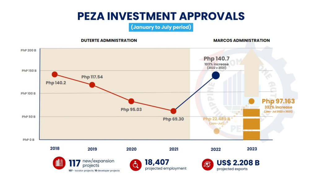 This brings PEZA’s total for the year to P97.163 billion, a 332.05% increase from the P22.489 billion investments approved in the same period in 2022.