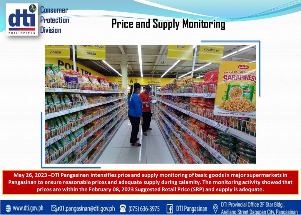 Trade and Industry Secretary Fred Pascual ordered the strengthening of the Price and Supply Monitoring of Basic Necessities and Prime Commodities (BNPCs) to ensure its availability as effects of Super Typhoon Mawar with local name Betty, continues to threaten some parts of Northern Luzon.