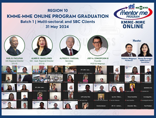 Fifty micro and small businesses in Region 10 virtually graduated from the Department of Trade and Industry’s (DTI) Kapatid Mentor ME-Money Market Encounter (KMME-MME) Program on May 31, 2024.