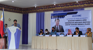 DTI Undersecretary Abdulgani Macatoman delivers his opening message during the launching of the Waste Processing Livelihood Project in Butig, Lanao del Sur. -