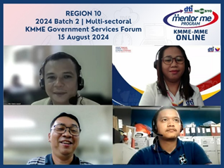 Department of Trade and Industry (DTI) Region 10 organized a virtual Government Services Forum for 54 mentees of the Batch 2 of DTI’s Kapatid Mentor Me-Money Market Encounter (KMME-MME) 2024 Program on August 15, 2024.