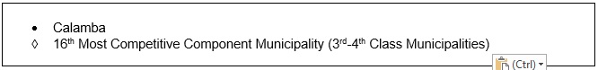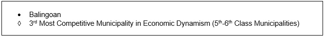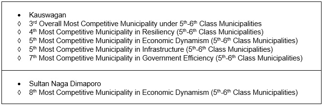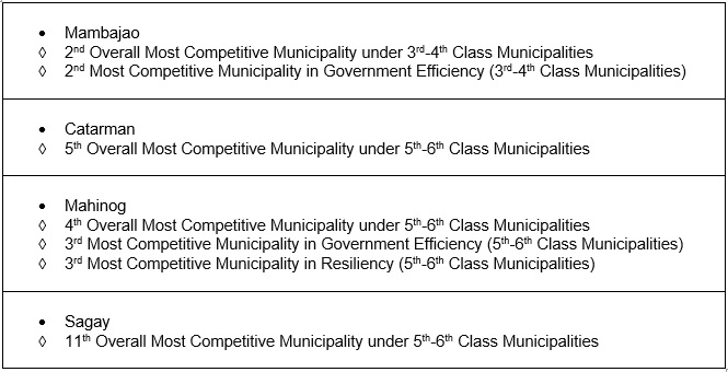 Other LGUs in Northern Mindanao that were included have been awarded for their competitiveness are as follows: