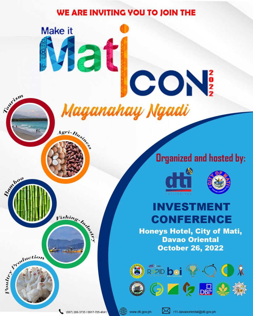 Tagged as “Make It Mati iCon”, the upcoming event, which is set on October 26 at Honey’s Hotel here, is a much-awaited move to entice more investors, especially with the vast opportunities that the city offers.