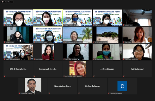 The month-long celebration opened with the Consumer Well Fair ZOOMba, an activity spearheaded by DTI-Consumer Policy and Advocacy Bureau (CPAB). This enjoined the agency’s offices nationwide to support the government’s health and wellness program via a virtual Zumba event.