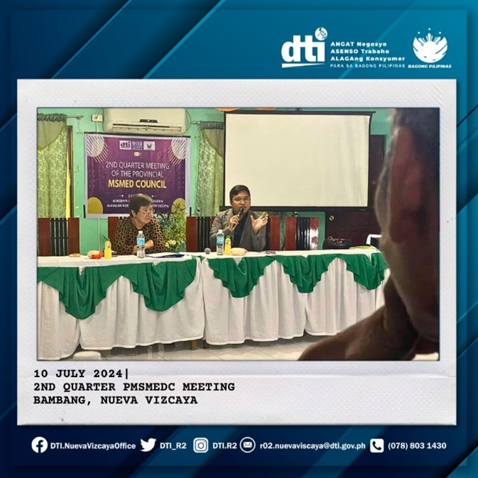 The Second Quarter Provincial MSME Development (PMSMED) Council Meeting brought together a total of 23 stakeholders/members from the government, private, MSME, academe, women, and youth sectors, on 10 July 2024, to discuss strategies for sustaining Nueva Vizcaya’s impressive economic performance as one of the top fastest-growing provinces in the country.