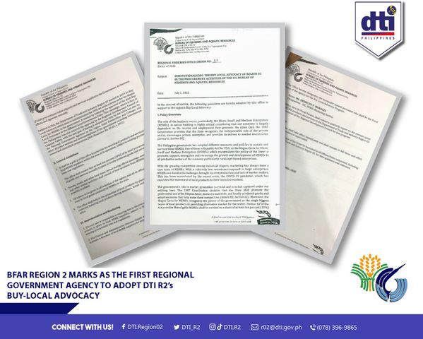 In an office order dated 1 July 2022, the Bureau of Fisheries and Aquatic Resources (BFAR) Region 2, through Regional Director Angel B. Encarnacion, manifested its official adoption of DTI R2’s Buy Local Advocacy and was marked as the first Regional Government Agency to adopt in the Cagayan Valley.
