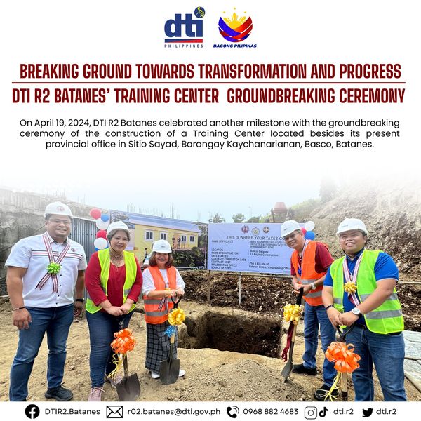 On 19 April 2024, DTI R2 Batanes celebrated another milestone with the groundbreaking ceremony of the construction of a Training Center located besides its present provincial office in Sitio Sayad, Barangay Kaychanarianan, Basco, Batanes.