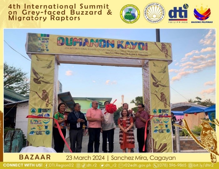 SANCHEZ MIRA, CAGAYAN — The 4th International Summit on Grey-faced Buzzard and Migratory Raptors (ISGFBMR) commenced as the Local Government Unit (LGU) of Sanchez Mira geared up for an exhilarating Bazaar Opening in close collaboration with the Department of Trade and Industry (DTI) Region 2 and DTI R2 Cagayan, alongside with the Department of Tourism (DOT) on 23 March 2024, at the Sanchez Mira Rizal Park and Sanchez Mira People’s Gym, Sanchez Mira, Cagayan.