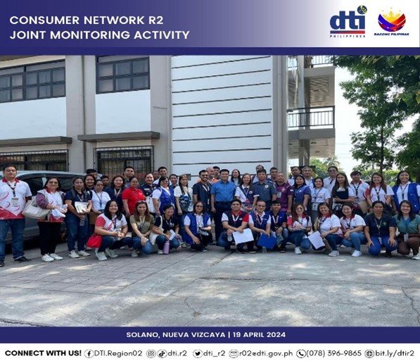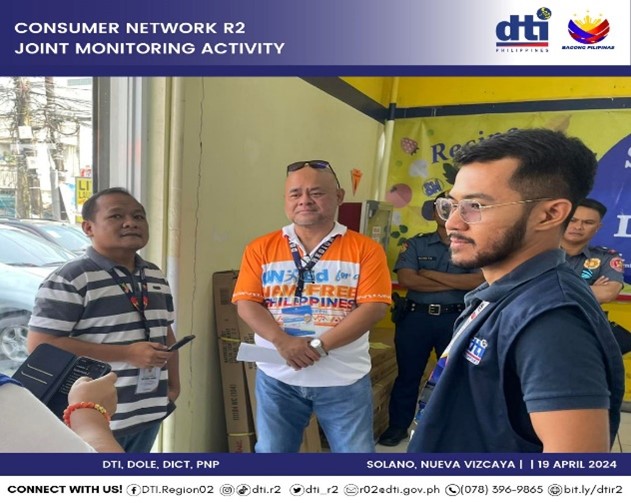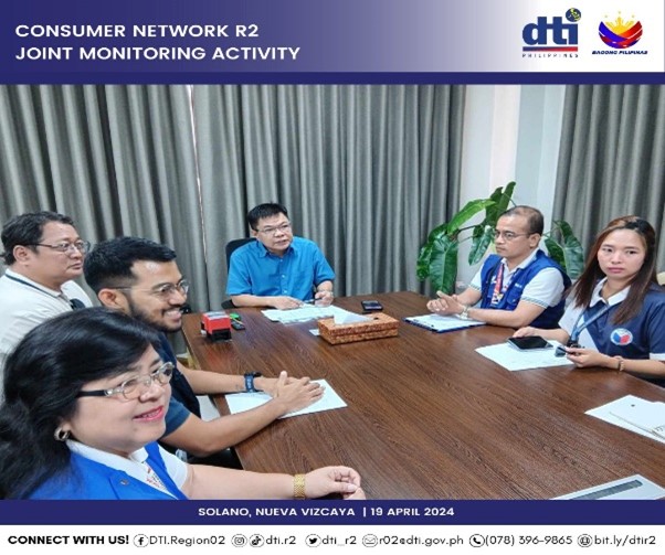 The Consumer Network (ConsumerNet) Region 2 member agencies conducted a Joint Monitoring Activity in the different business establishments in Solano, Nueva Vizcaya, on 19 April 2024. This activity aims to ensure business establishments’ compliance with various government regulations and to show the government agencies’ synergy in upholding consumer welfare.