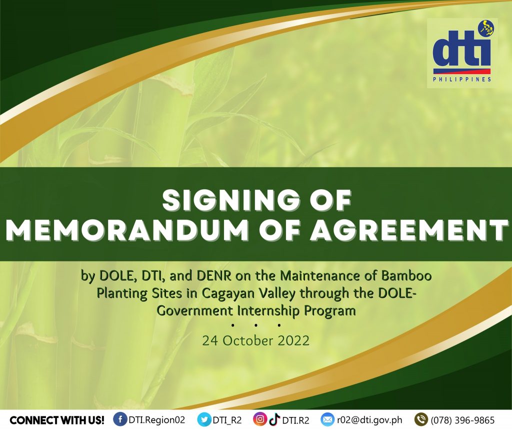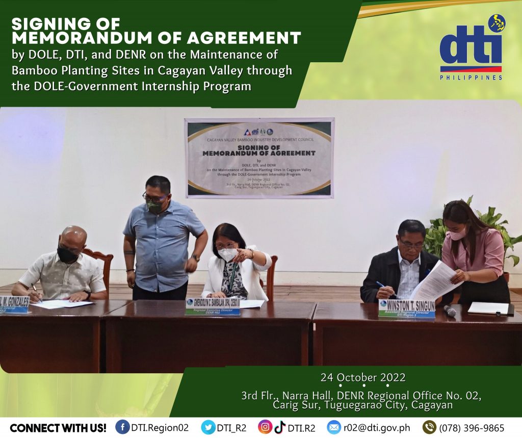 DTI, DOLE, DENR ink MOA for bamboo planting sites maintenance in Cagayan Valley thru GIP
