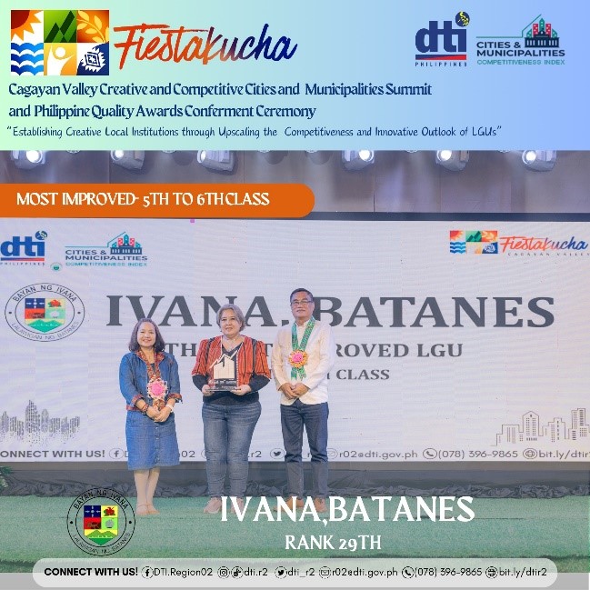The Department of Trade and Industry (DTI) Region 2 recently recognized the region’s most competitive and most improved Local Government Units (LGUs) that landed in the Top 30 Most Improved and Most Competitive LGUs at the National Level in the 2023 Cities and Municipalities Competitive Index awarding ceremonies held at the Isabela Convention Center (ICON), Barangay San Fermin, Cauayan City, Isabela, on 7 December 2023.