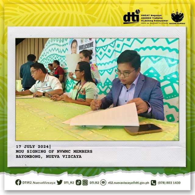 As a member of the Nueva Vizcaya Watershed Management Committee (NVWMC), Department of Trade and Industry (DTI) Region 2 Nueva Vizcaya led by Provincial Director Atty. Michael B. Paggabao joined the Ceremonial Signing of the Memorandum of Understanding among the NVWMC members on 17 July 2024.