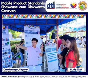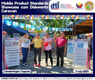 The Department of Trade and Industry (DTI) Region 2 and DTI Cagayan Provincial Offices, in collaboration with the Local Government Unit (LGU) Camalaniugan, Cagayan, successfully staged the 2nd Run of the Mobile Product Standards Showcase cum Diskwento Caravan on 11 July 2024 at the Municipal Grounds in Camalaniugan, Cagayan.