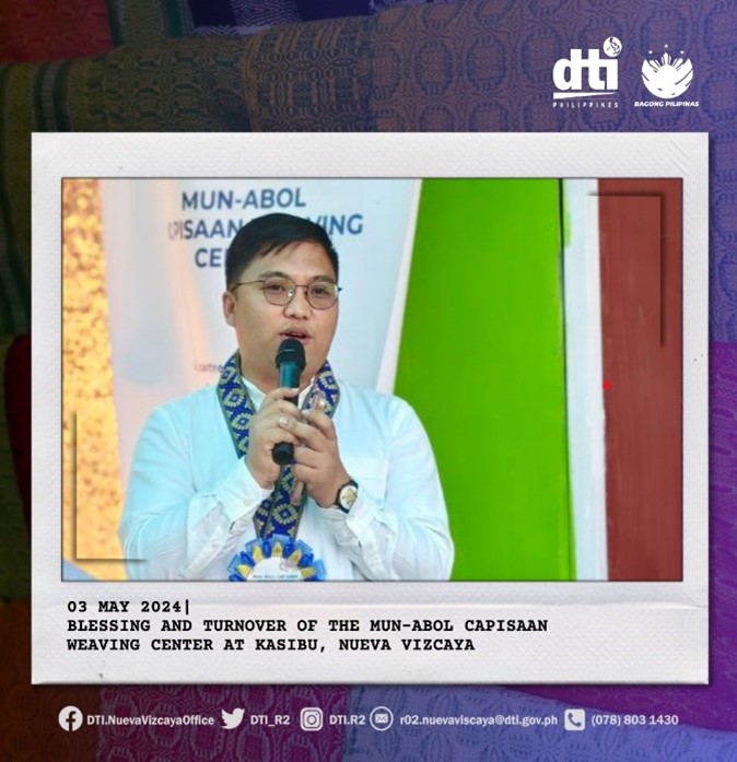 NUEVA VIZCAYA, PHILIPPINES — The Department of Trade and Industry (DTI) Nueva Vizcaya celebrated the launch of the Mun-Abol Capisaan Weaving Center in its effort to revitalize indigenous peoples (IP) culture and creative industry of the municipality of Kasibu, particularly in loom weaving on 03 May 2024.
