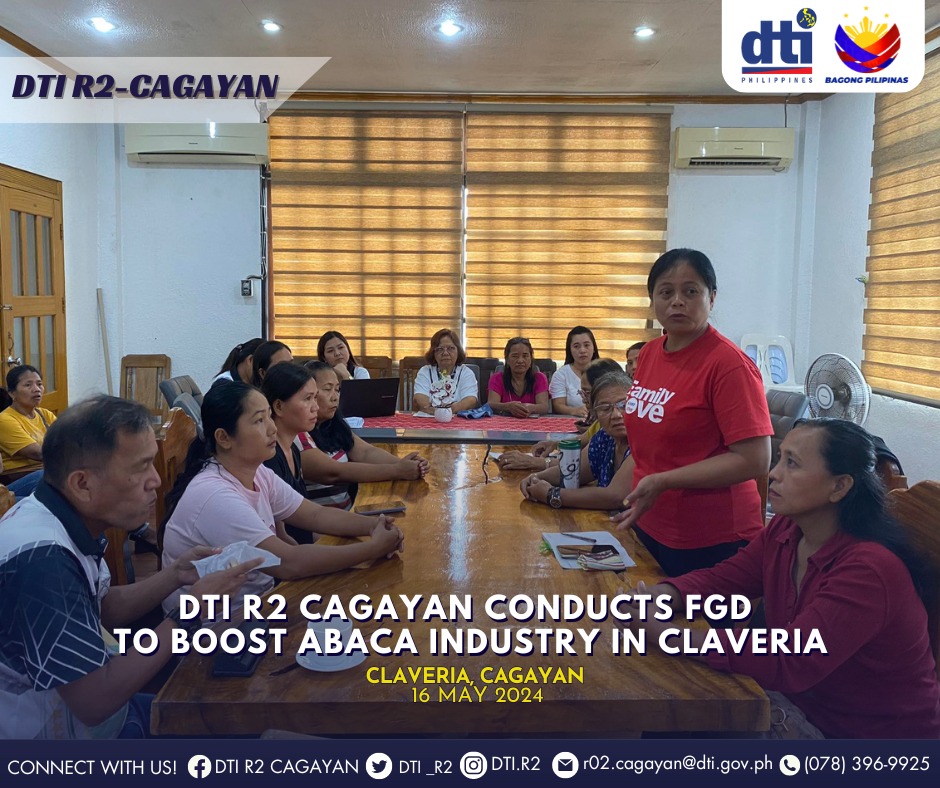 Claveria, Cagayan — The Department of Trade and Industry (DTI) R2 Cagayan Provincial Office successfully conducted a Focus Group Discussion (FGD) with the Claveria Handicraft Association on 16 May 2024. This event marks a significant step in our ongoing efforts to support and enhance the abaca industry in Claveria.