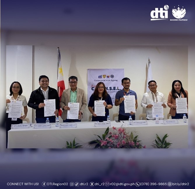 This partnership with the CSU Legal Aid Center is the pioneer of Project C.O.U.N.S.E.L. across the region. Atty. Norman Clarence Lasam, Dean of the CSU College of Law; Atty. Cyrus I. Restauro, Chief of CPD-RO; Ms. Edelle C. Carranza, OIC Legal Officer of DTI Region 2; and Atty. Angie U. Gumaru, OIC Chief of CPD-Cagayan, were present during the ceremony.