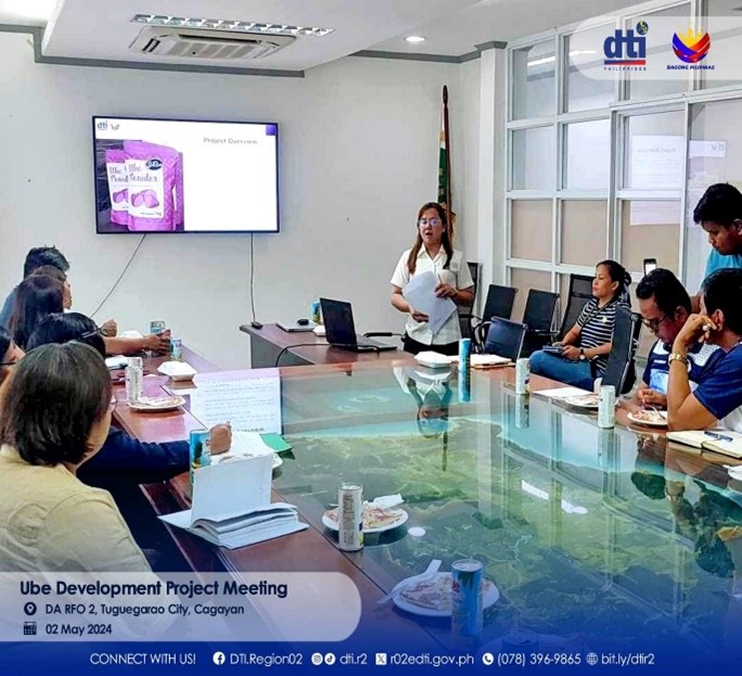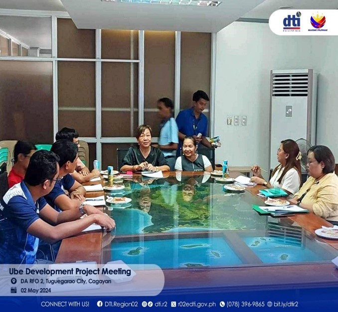 As the Department of Trade and Industry (DTI) Region 2 shifts to a higher gear to take advantage of the growing global demand for ube powder, Regional Director Leah Pulido Ocampo, together with DTI Quirino Provincial Director Mary Ann Dy, and Product Development and Standards Unit Head Ragel Tacazon convened with Regional Executive Director Rose Mary Aquino and her team at the Department of Agriculture Regional Field Office (DA RF02) to discuss the strengthening of existing convergent efforts to further sustain the production of ube.