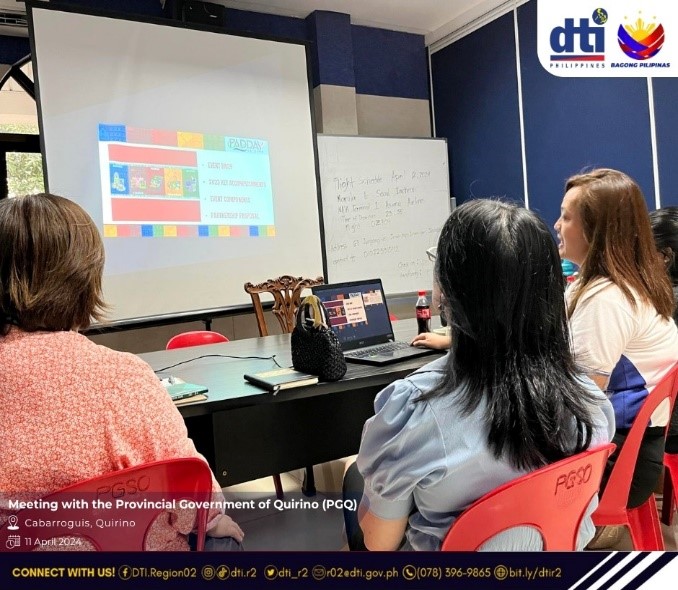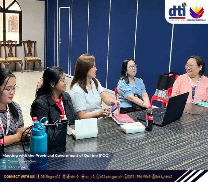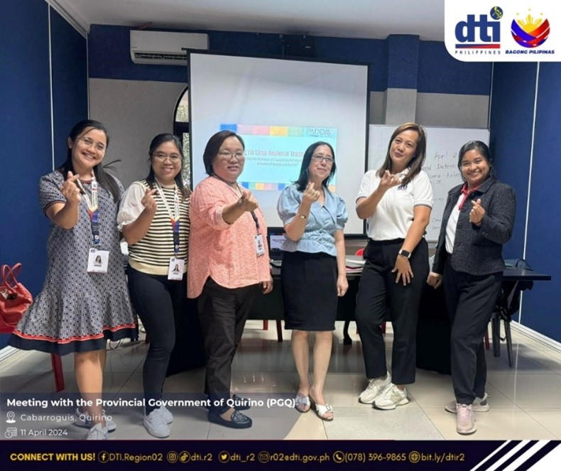 This was the result of the buy-in meeting with the Provincial Government of Quirino through Provincial Administrator Carmelita Jimenez that was conducted by the officers of the DTI R2-SME Development Division (SMEDD), led by OIC Chief Desiree Angolluan, and the DTI R2 Quirino, led by Provincial Director Mary Ann Dy.