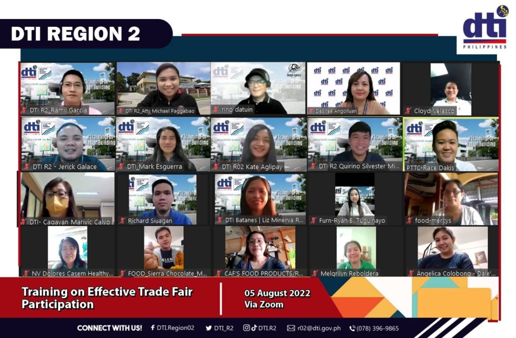 To prepare Region 2 MSMEs for the upcoming Padday na Lima Regional Trade and Investment Fair (RTIF) on 25 November 2022, the SME Development Division’s Marketing and Promotions Unit, in collaboration with the Philippine Trade Training Center (PTTC) and SHINE Cagayan Valley-RIIC, concluded its series on Market Expansions and Market Opportunities Webinar on 5 August 2022 via Zoom.