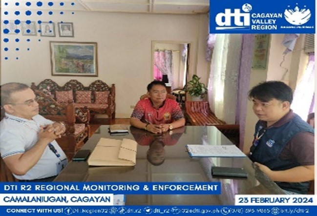 The Department of Trade and Industry (DTI) Region 2 and Cagayan Provincial Office conducted the second run of its Regional Monitoring and Enforcement Activity on 𝟮𝟮-𝟮𝟯 𝗙𝗲𝗯𝗿𝘂𝗮𝗿𝘆 𝟮𝟬𝟮𝟰 in Aparri and Camalaniugan, Cagayan, respectively, to monitor business establishments’ compliance with fair-trade and consumer-related laws.