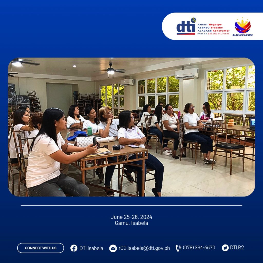 Isabela, Philippines — The Department of Trade and Industry R2 Isabela Provincial Office, in collaboration with the Local Government Unit of Gamu, conducted a two-day Skills Training on Cassava Processing, along with sessions on Basics of Marketing and Product Packaging and Labeling, on 25-26 June 2024. The event took place at the LGU Gamu Compound, District 1, Gamu, Isabela, and was attended by fifteen (15) members of the Isabela Green Ladies Organization (IGLO) Gamu Chapter.