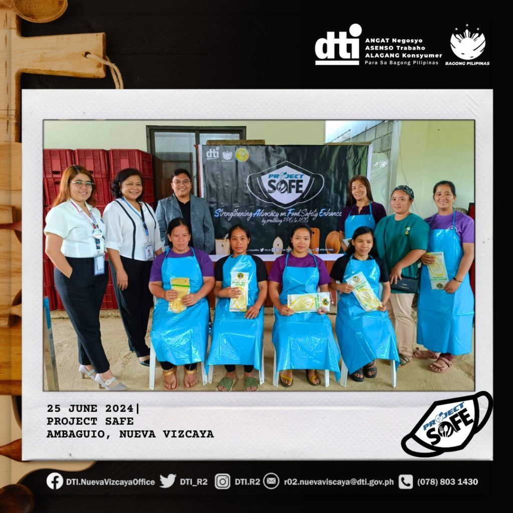Ambaguio, Nueva Vizcaya — The stride towards promoting food safety and creating a safe working environment for market vendors and food processors continues as Team DTI R2 Nueva Vizcaya led by Provincial Director Atty. Michael B. Paggabao rolled out Project SAFE (Strengthening Advocacy on Food Safety Enhancement) in Ambaguio, Nueva Vizcaya on 25 June 2024.