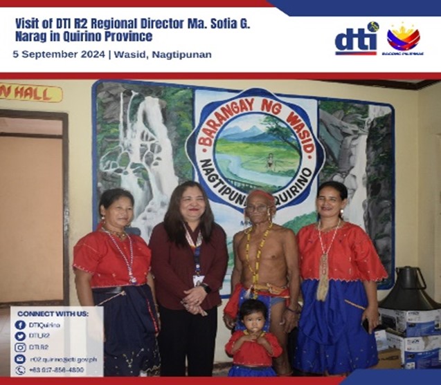 On 5 September 2024, the Department of Trade and Industry (DTI) R2 Regional Director Ma. Sofia G. Narag, CESO V travelled all the way to one of the farthest barangays in Quirino- Wasid, Nagtipunan to visit the Bugkalot tribe. RD Narag reached out to the officers of the Livelihood Association of Egongots (LAE) whose 40 members belong to the Bugkalot IP group.