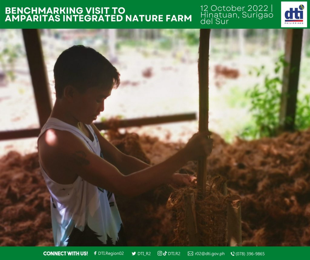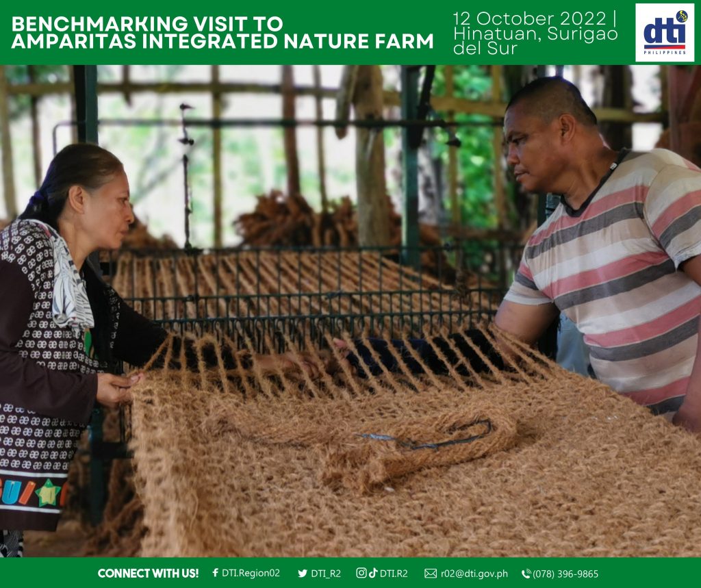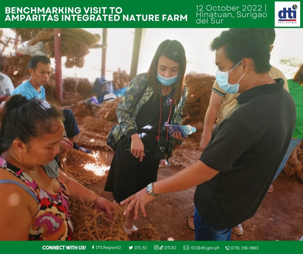 The Department of Trade and Industry Region 2 (DTI R2), represented by Ms. Manilyn C. Ponce, Regional Focal Person for Coconut, and Ms. Jayle Pauline P. Damasco, Regional Alternate Focal Person for Coconut, participated in the recently conducted National High Value Coco Products (HVCP) Industry Cluster CY 2023 Planning Workshop in Butuan City cum Benchmarking Visit to the Amparitas Integrated Nature Farm on 11-12 October 2022.